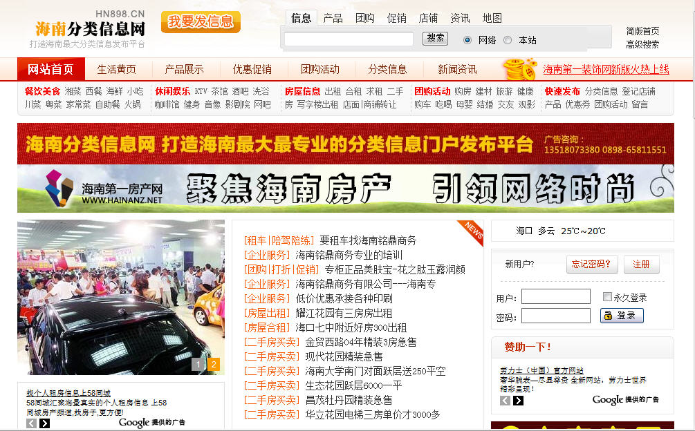 海南分類信息網(wǎng)是一個提供免費發(fā)布房產(chǎn)信息,招聘求職,二手買賣,本地服務(wù),海南美女,社區(qū)活動,城市資訊,??诜课莩鲎?免費中國廣告,海南房產(chǎn),的全方位分類信息平臺