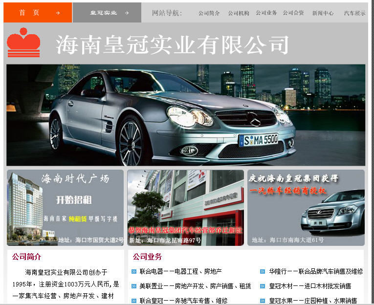 海南皇冠實(shí)業(yè)有限公司創(chuàng)辦于1995年,注冊(cè)資金1003萬(wàn)元人民幣。海南皇冠公司是一家集汽車經(jīng)營(yíng)、房地產(chǎn)開發(fā)、建材供應(yīng)、水果種植銷售、礦產(chǎn)品開采加工于一體的多元化經(jīng)營(yíng)的集團(tuán)企業(yè)。海南皇冠實(shí)業(yè)有限公司是海南省百?gòu)?qiáng)企業(yè)。